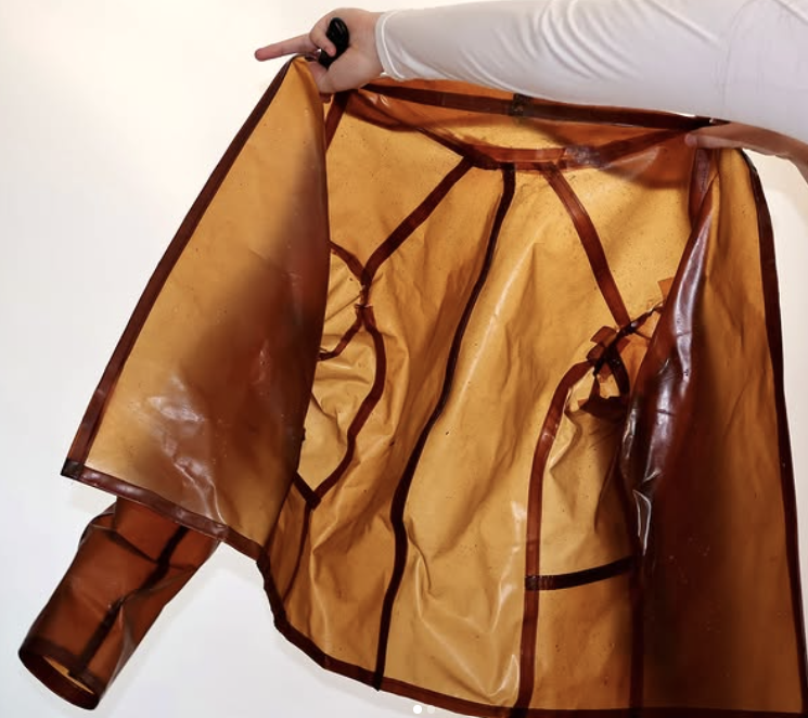 Some people state “the promise of a better future lies with the young” and in this case it’s true, Romane Poret, a french designer from Seyne is here to change the business. The artist started this idea as the final project of her first year of school in the french institution: Higher Education School of Art and Design in Toulon. The purpose behind it was revaluing food waste using it for the creation of bioplastics, at first sampling different results, creating fabrics and then following it up with the manufacturing of clothing and accessories. Achieving an environmentally friendly production and product.